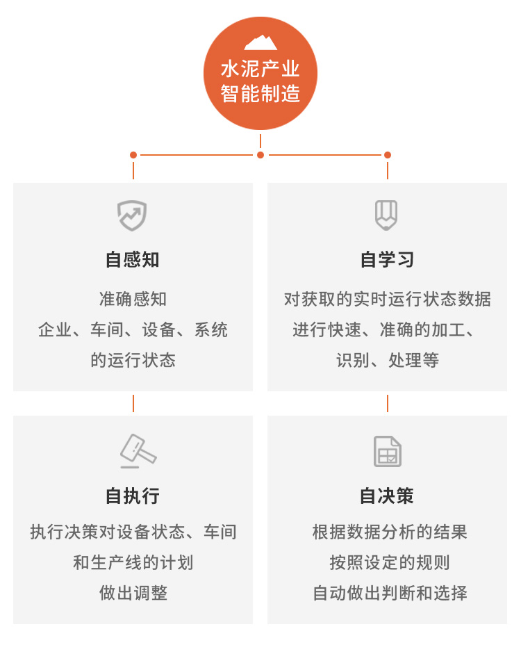 智能化水泥工廠是以打通水泥生產(chǎn)企業(yè)生產(chǎn)經(jīng)營全部流程為著眼點,實現(xiàn)從產(chǎn)品設(shè)計到銷售,從設(shè)備控制到企業(yè)資源管理所有環(huán)節(jié)的信息快速交換、傳遞、存儲、處理和無縫智能化集成。智能水泥工廠建設(shè)主要包括從智能規(guī)劃開始,并涵蓋智能控制、智能生產(chǎn)、智能物流、智能管理、智能分析和智能服務(wù)等六個模塊,實智能制造。