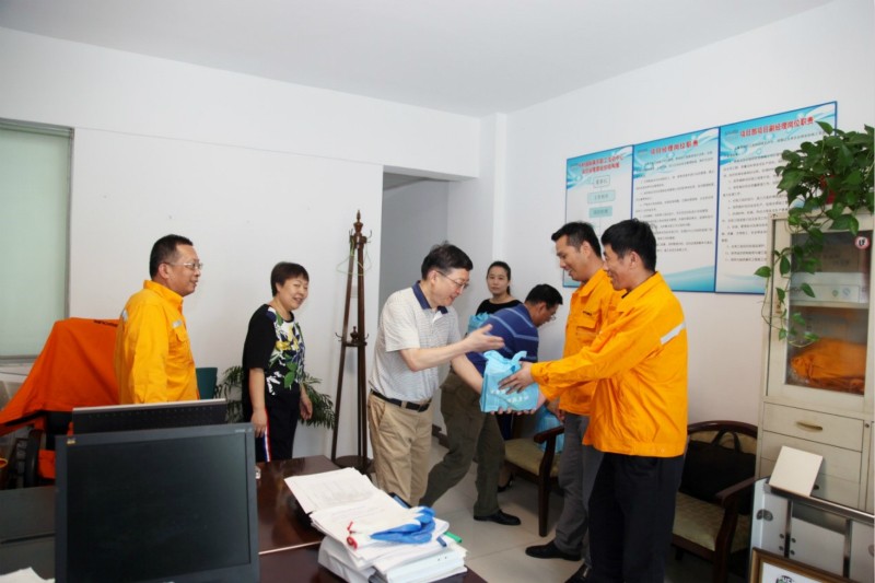 從7月份入伏以來,38℃左右的高溫天氣已持續(xù)數(shù)日,公司高溫崗位的職工不受高溫影響,堅(jiān)守崗位,以飽滿的工作熱情保證了工作的正常開展。食堂師傅們在炒鍋前忍受著50~60℃的高溫,保質(zhì)保量地做好每一道菜;司機(jī)班在高溫的天氣滿足出車需求;公司項(xiàng)目部的干部員工頂著烈日,深入工地檢查每一道工序,確保施工質(zhì)量和進(jìn)度;物業(yè)公司人員戰(zhàn)高溫認(rèn)真做好園區(qū)安保等工作,針對大家的辛勤工作,公司工會及時(shí)組織了高溫慰問。8月9日,公司副總經(jīng)理、工會主席趙美江,工會副主席祝建成來到公司食堂操作間、司機(jī)班、項(xiàng)目部以及物業(yè)公司,為大家送去了防暑降溫慰問品。